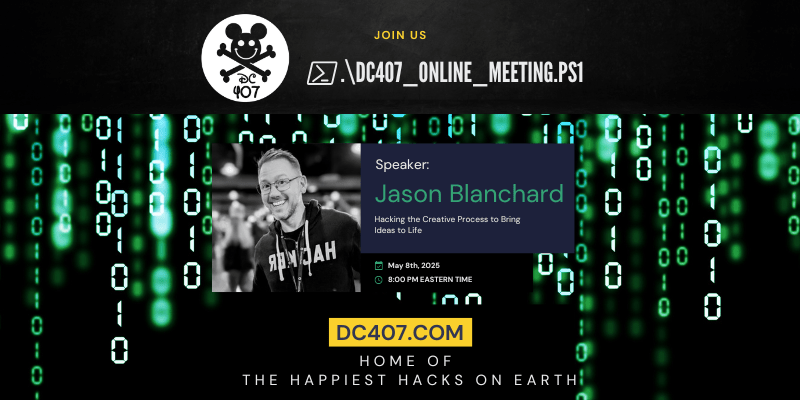 DC407 Online, Thursday May 8, 2025 at 8PM Eastern time on zoom.