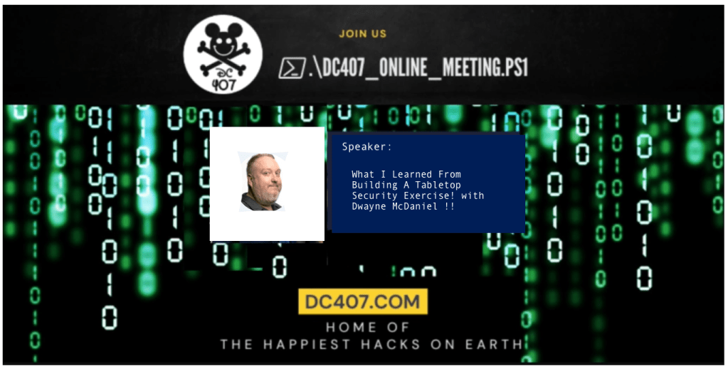 We have our regularly scheduled DC407 in-person meeting on October 28th at 7PM at Colo Solutions !!