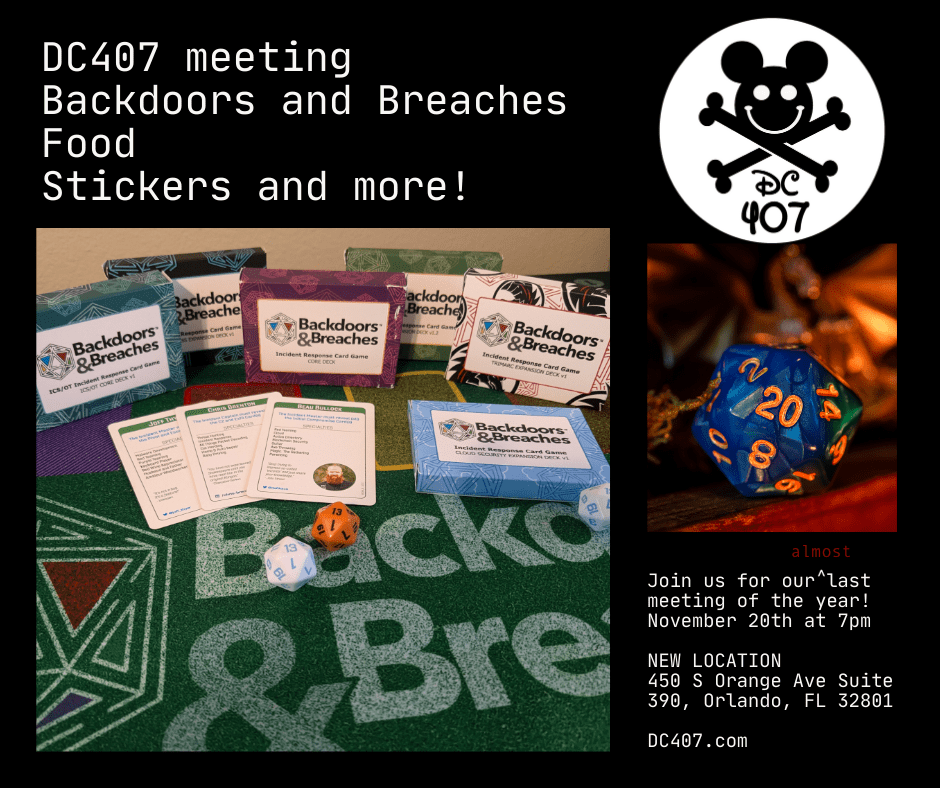 We have our regularly scheduled 🎅 DC407 ❄️ in-person ☃️ meeting on Tuesday, December 10, 2024 at 7PM at Colo Solutions ⛄ !!